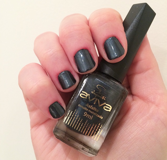 -Cor Asfalto (metalizado): um azul marinho bem escuro lindíssimo! Adoro o efeito metalizado nas unhas e ficou super moderno nessa cor. Uma camada dele já é suficiente. Passei ele e escolhi como meu esmalte da semana e depois atualizo no próximo post a durabilidade dele.